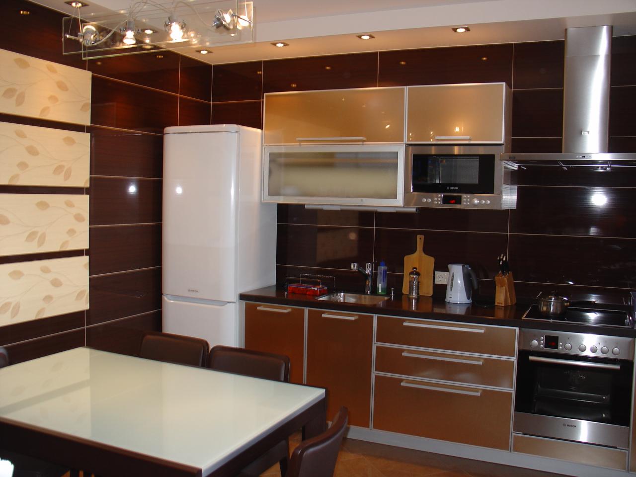 В то время в отделке интерьеров был очень популярен цвет «венге» (коричневый оттенок), который и был выбран для пола в комнатах. Но именно выбранная коллекция паркетной доски содержала оранжевые вкрапления в виде небольших волосков.