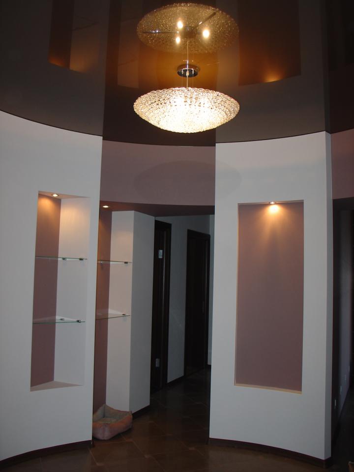Прихожая в новом интерьере имеет в плане округлую форму, что визуально увеличивает её размер, а также придаёт более гостепреимный вид.