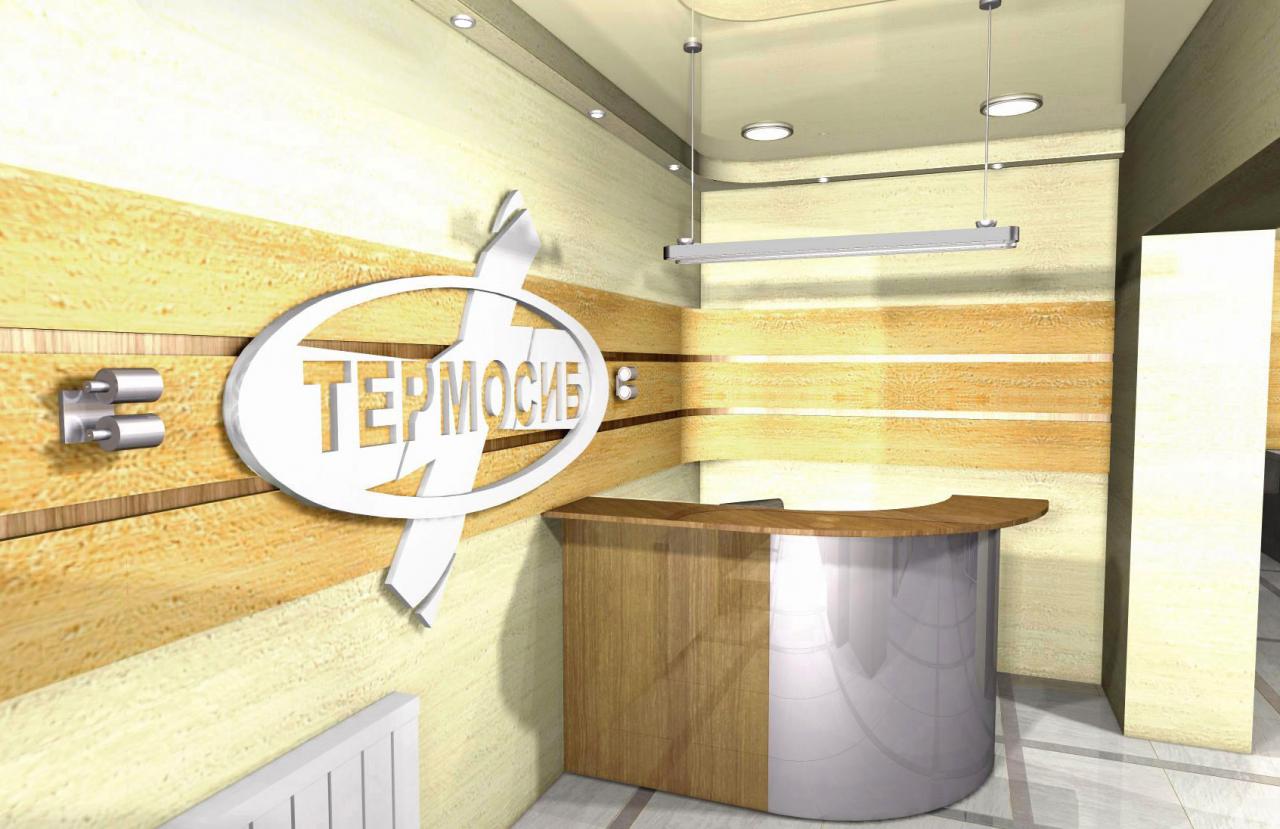 Тёплые тона в цветах и материалах оформления интерьера офиса компании «Термосиб» подчёркивают основную направленность деятельности компании (теплоизоляционные материалы), а также тёплое отношение к клиентам! :)