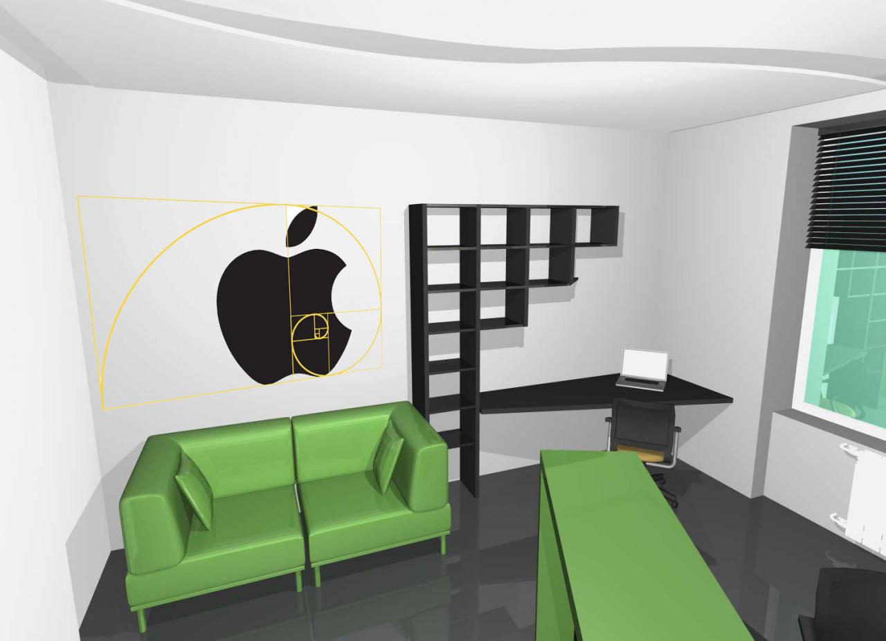 Основным цветом для интерьера выбран, зелёный (ведь Apple же ;).